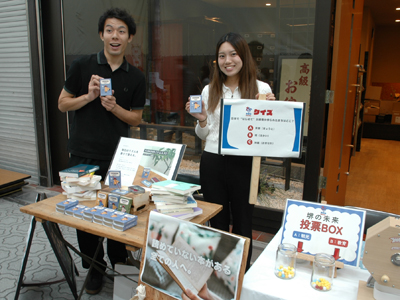 そして、山之口商店街でも若い学生さん達が当組合に加盟する奥野晴明堂とのコラボレーション製品「FUMUMS(フムムス)」を熱心に販売していました。学生達により企画とパッケージデザインが作成され、今後11月1日にもザビエル公園にて販売されるとの事。ご興味があれば、是非手に取って頂ければと思います。