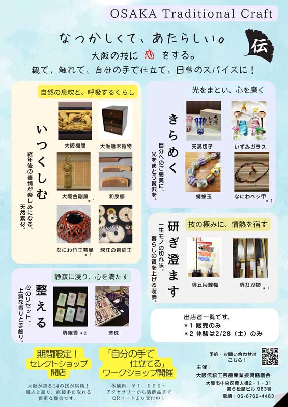また、大阪伝統工芸品産業振興協議会の特設サイトにて、事前予約が出来ますので、是非ご活用下さい。