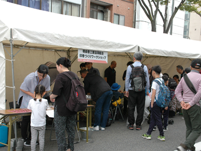 当組合は20日日曜日に、恒例となった大小路での「印香づくり体験ワークショップ」を開催いたしました。前日夜間の大雨も止んで、過ごし易い秋の気候となった事もあって、大変大勢の方が堺まつりに参加され、印香づくり体験も開催と同時に終日超満員となり100名近い方々が印香づくりを楽しまれました。